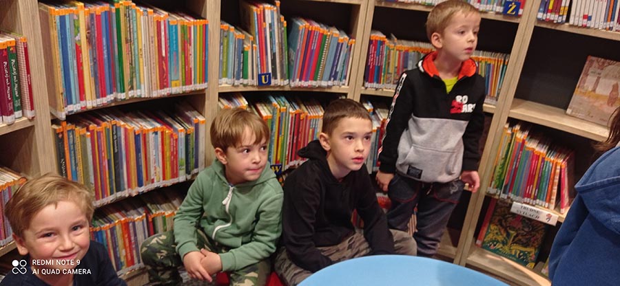 Skrzaty na lekcji w bibliotece