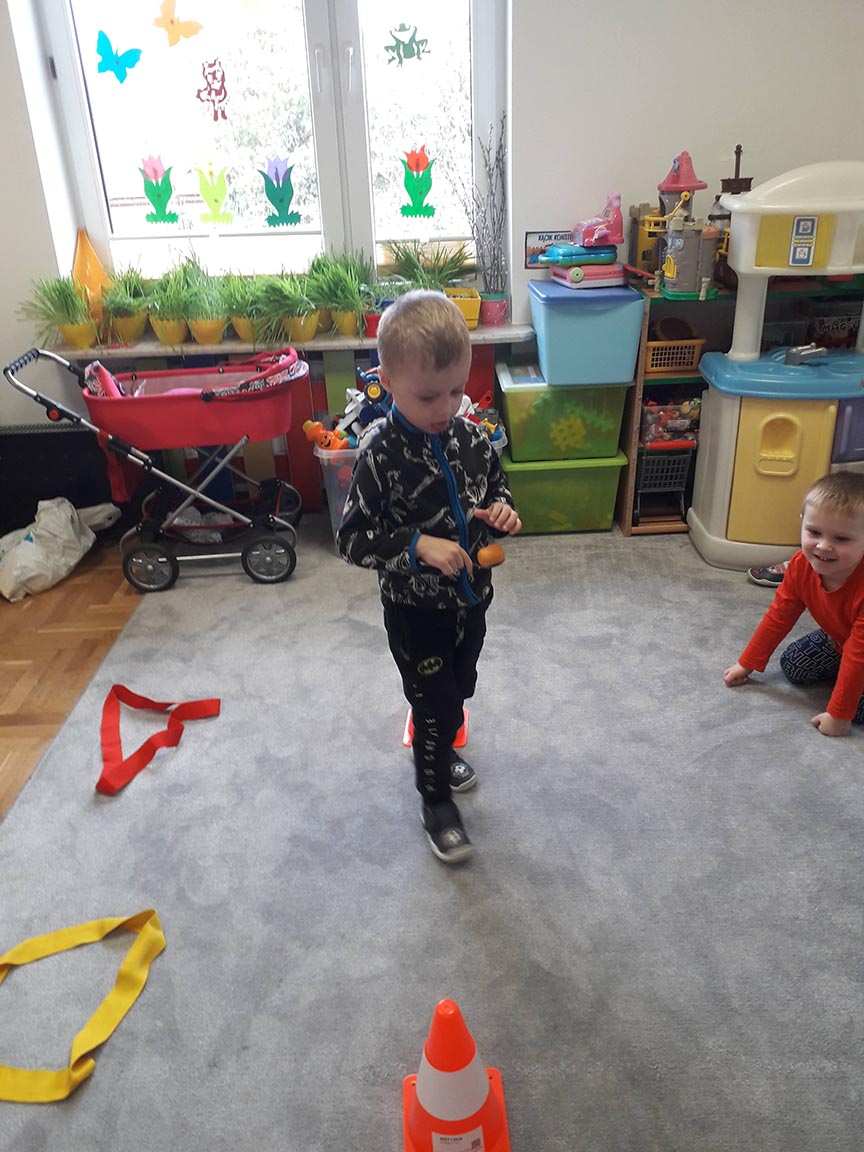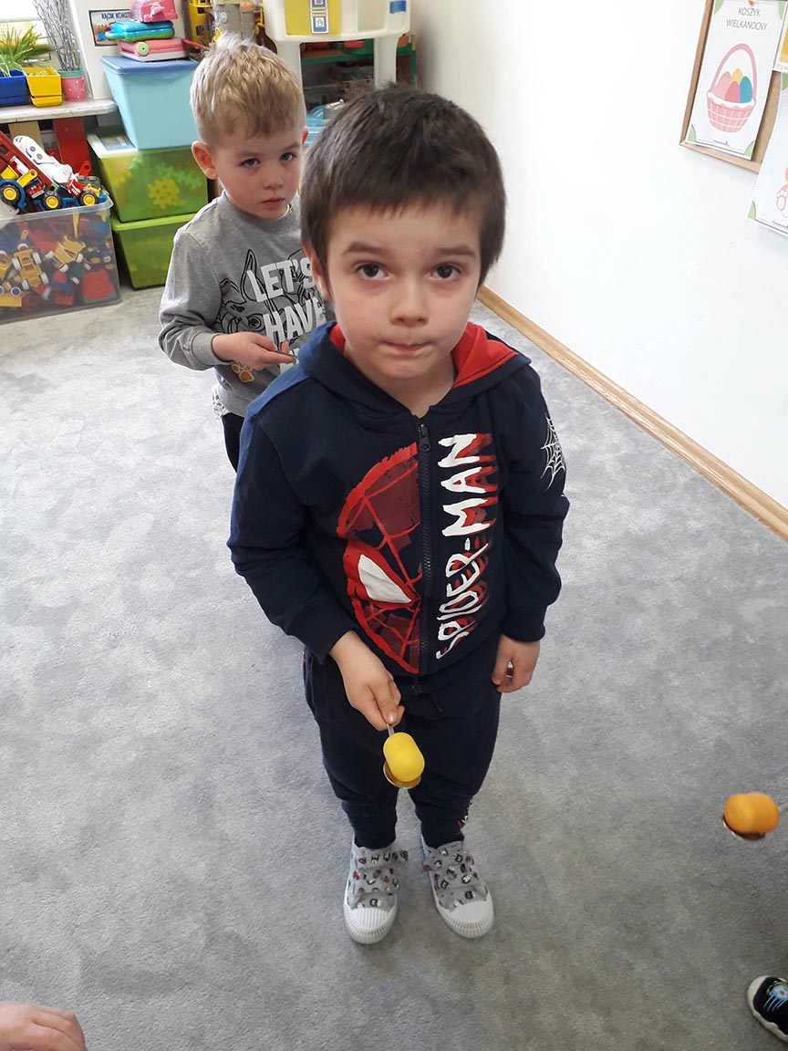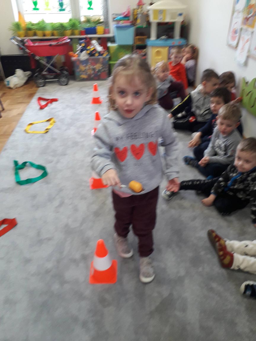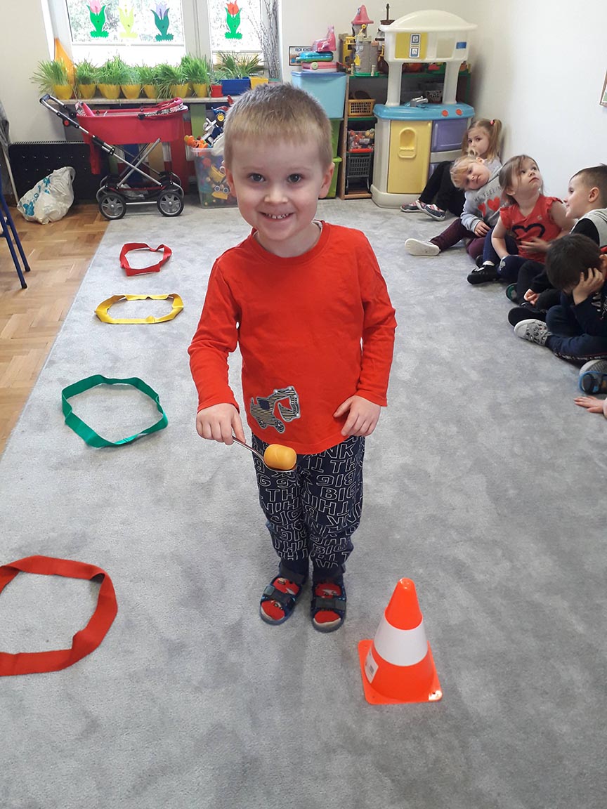 • "Na łyżce"- zabawa ruchowa z elementami równowagi