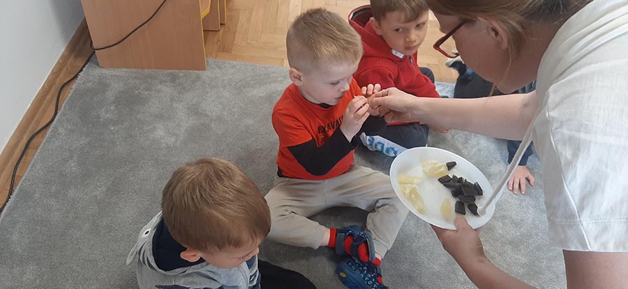 Zabawa sensoryczna, doskonalenie zmysłu węchu i smaku.