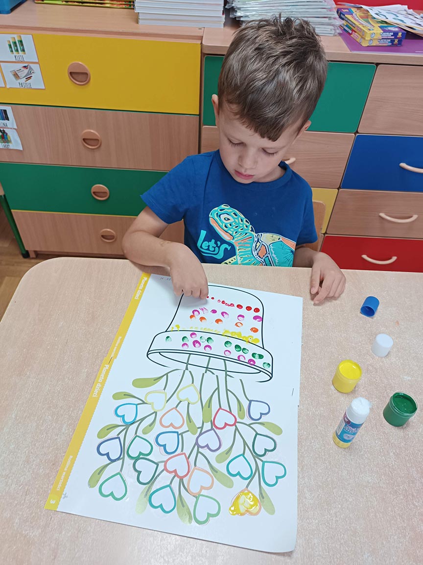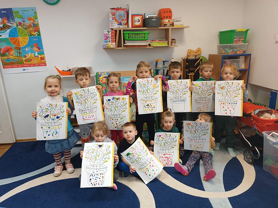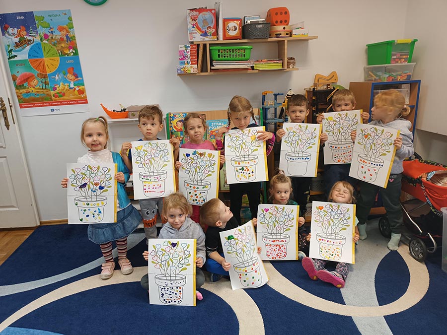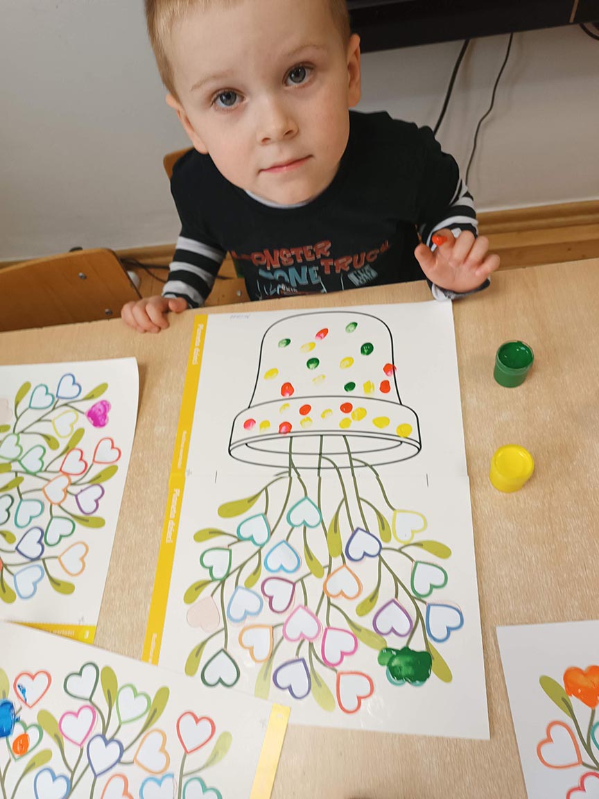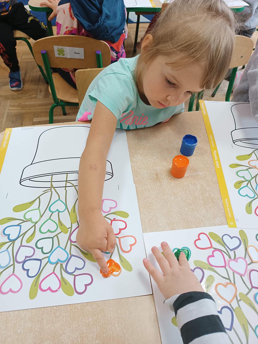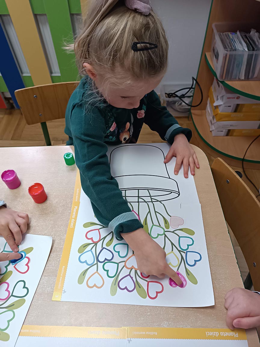 Zajęcia społeczne obejmujące zagadnienia przyjaźni, odwagi, pracowitości, uprzejmości, wolności, cierpliwości, szacunku, co dwa tygodnie dzieci będą poznawać nową wartość zamalowując jedno serduszko na swoim drzewku.